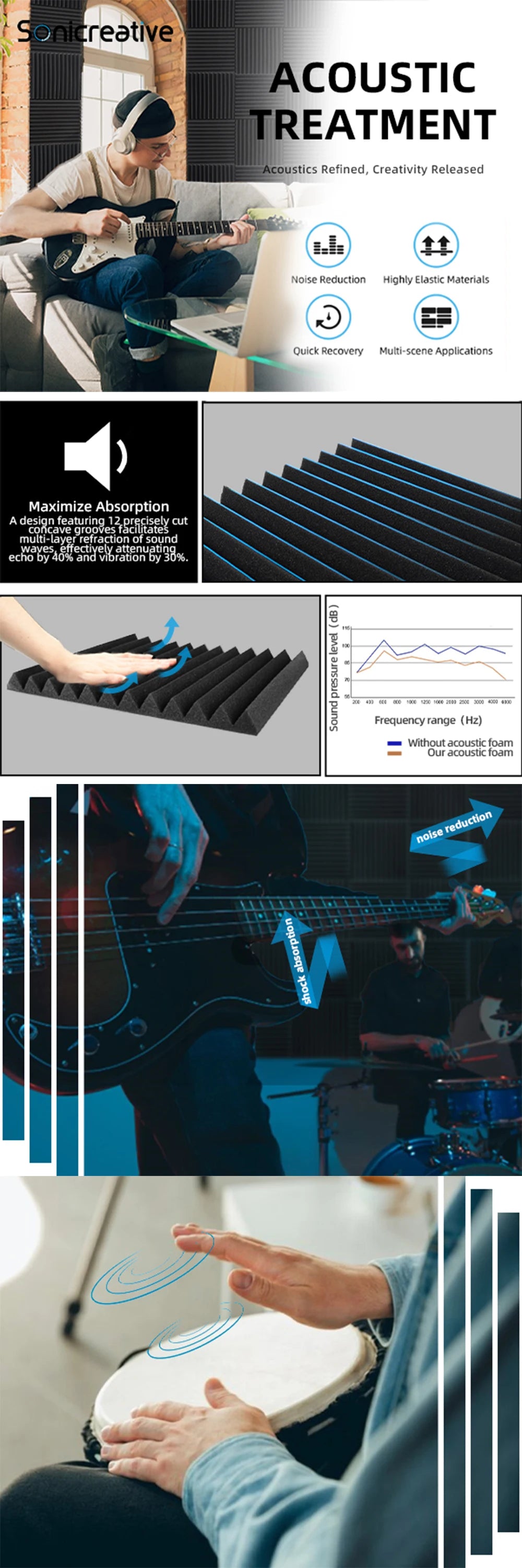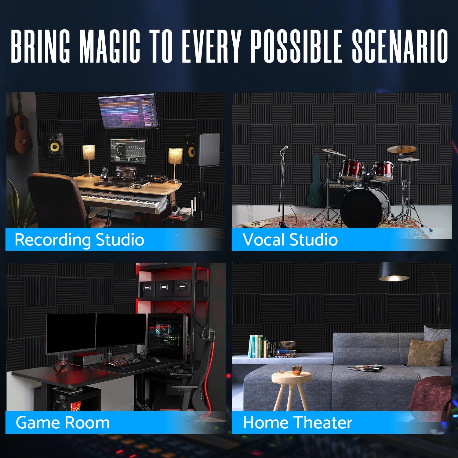 52 Pack Cheap Acoustic Foam Panels 1 X 12 X 12 Inches Large Sound Proof Foam Panels for Walls, Wedge Soundproof Wall Panels Acou